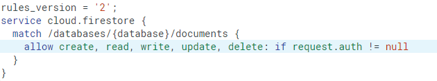 You may not want to allow everyone to write everything. Else, everyone could modify the data of the others! To choose who can access what and how, Firebase has the rules system. It interoperates with firebase authentication, so that you can write this rule to only let authenticated players access the database: