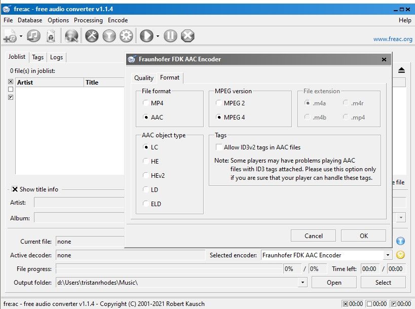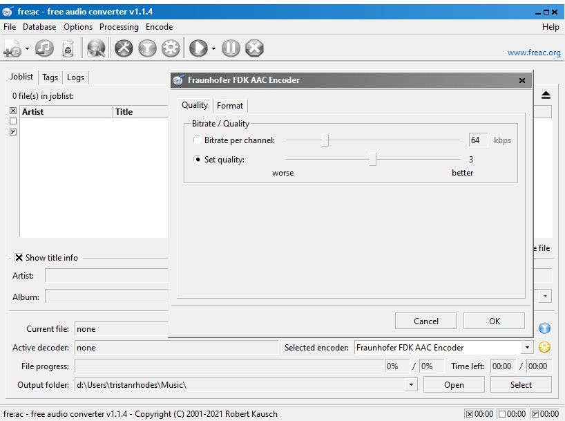 • Choose the encoder called "Fraunhofer FDK AAC Encoder".